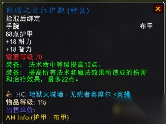 术士套装,耐力高了,生存能力更强。 六、护腕 1.阴暗之火红护腕