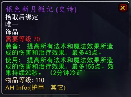 英雄救萨尔掉落。 十二、饰品 1.银色新月徽记