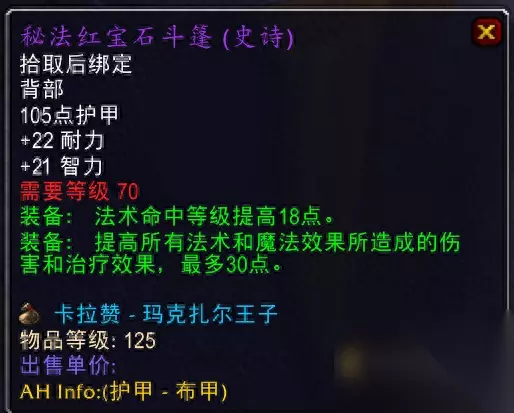 法系通用套装,可以常刷围栏,不管是肩膀还是跨眼 四、披风 1.秘法红宝石斗篷