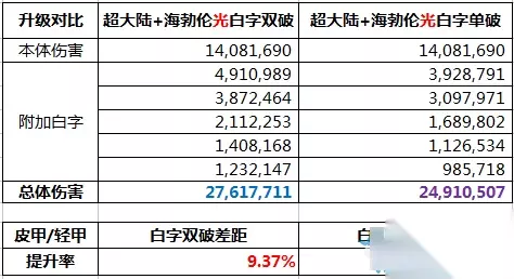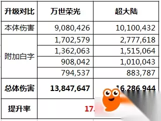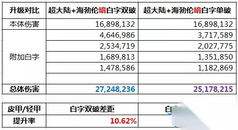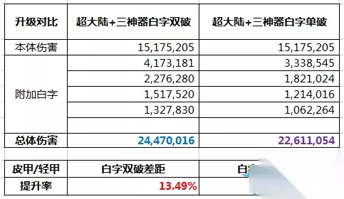 我们惊讶的可以看出,在单人的情况下,升级超大陆连20%的提升都达不到?是不是不敢相信 但这是真的!因为升级后降低的基础属性,在单人情况下损失太大,然而B套的精髓是降低基础,提升吃奶率。同时因为超大陆上衣对于不同职业,有不同的提升效果,因此提升率需加上自身因为超大陆上衣9所增加的技能等级的伤害~ 二、恶魔猎手VS超大陆(三神器)