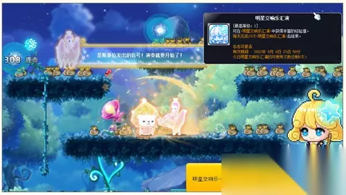 星光交响曲持续奏响,更多趣味游戏等你体验! 9月6日之前,接取[星光交响曲]乐耀星光任务,星光交响乐团的指挥斯泰拉致力于将夜空中所有星星的音乐变奏成一首完美的交响曲,受到斯泰拉的委托,帮忙收集冒险岛世界的声音吧!