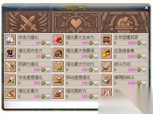 根据每个章节探险的时间,会发放对应的探险队点数。探险队点数可以用于强化探险特性。强化探险特性是累积了队员此前的勘探技巧,能够帮助时限更高效便捷的勘探。
