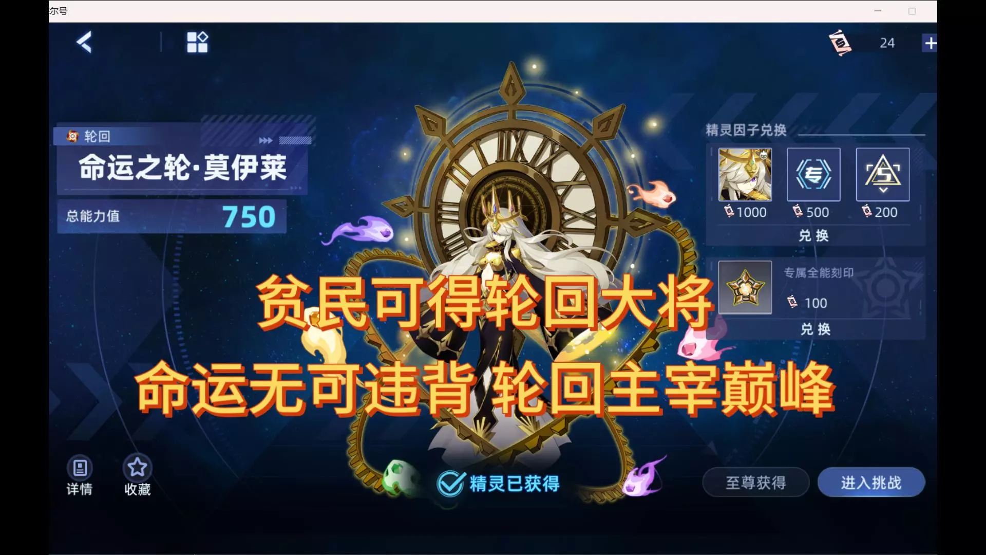 这是2025版赛尔号平民向攻略,介绍PVP强势精灵莫伊莱的困难因子打法,无需套装和称号,使用星光·丽莎布布、星光·魔焰猩猩等全常驻精灵即可挑战,包含不同难度关卡的对应打法。