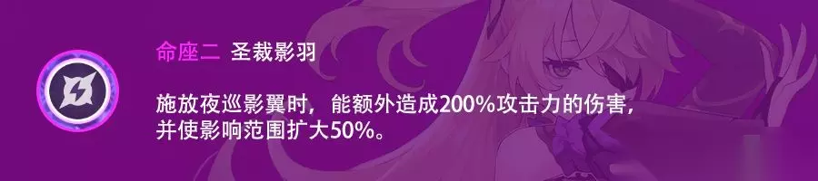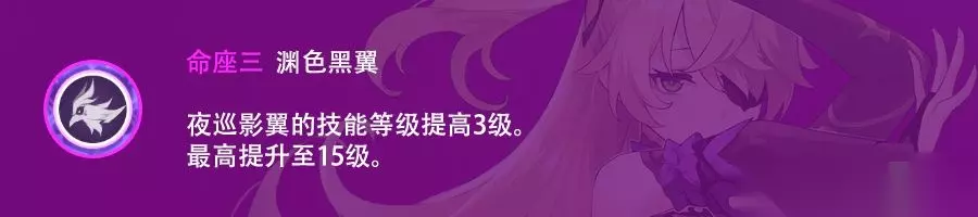 增加元素爆发等级,意不如四命,一般的命座。 六命·永夜之禽