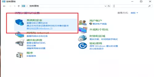 3、进入控制面板主页,点击系统与安全进入