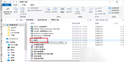 5、进入管理工具界面,双击服务进入,