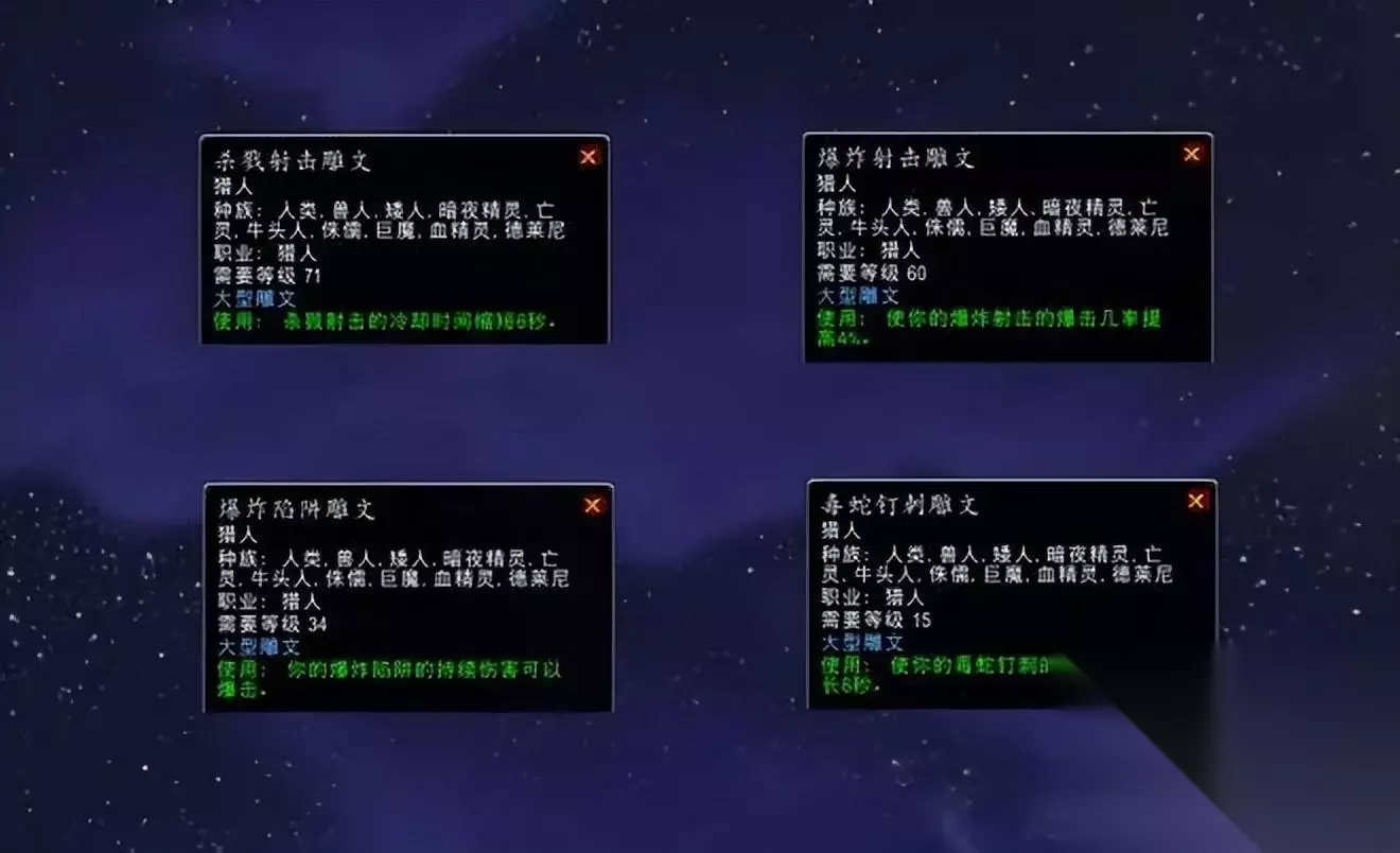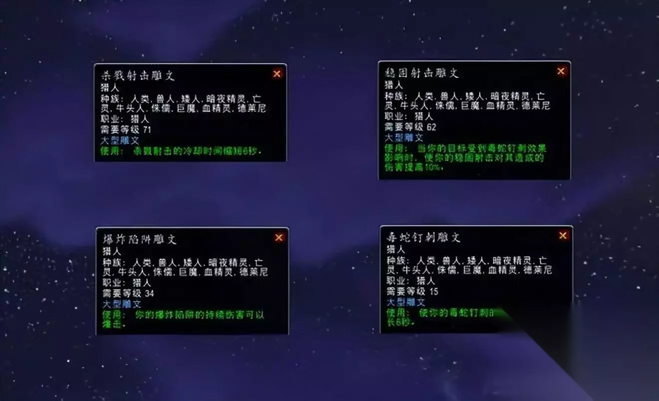 猎人 生存猎 56生存/15射击(属性优先级:命中达标8%>敏捷>爆击>攻强>护甲穿透>急速。) 如果团队不需要猎人提供回蓝buff,可以将狩猎刺激以及狩猎小队的天赋点数挪给射击的专注瞄准补充命中或者野兽控制的强化雄鹰守护,当后期爆击足够时,可以将破甲虚弱的1到2点挪给强化雄鹰守护。
