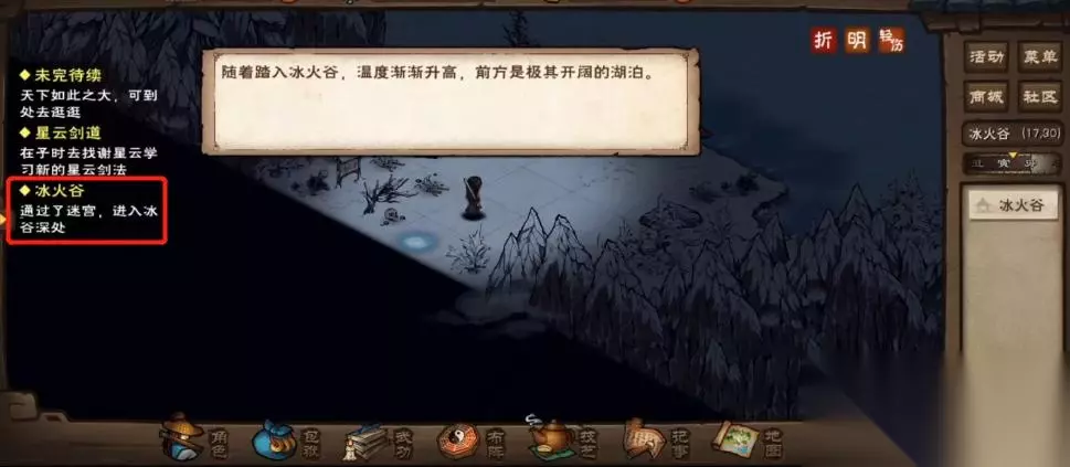 10、通过迷宫后“雪岭迷宫”任务完成,就会进入到冰火谷,坐船前往湖中心完成后续其他任务就行了。
