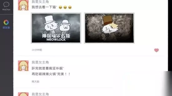 拣爱第一章深入了解方式: 1、在游戏的微信中,点击查看女主角的朋友圈,喜欢与【侦探猫赫尔墨斯】相关的朋友圈。
