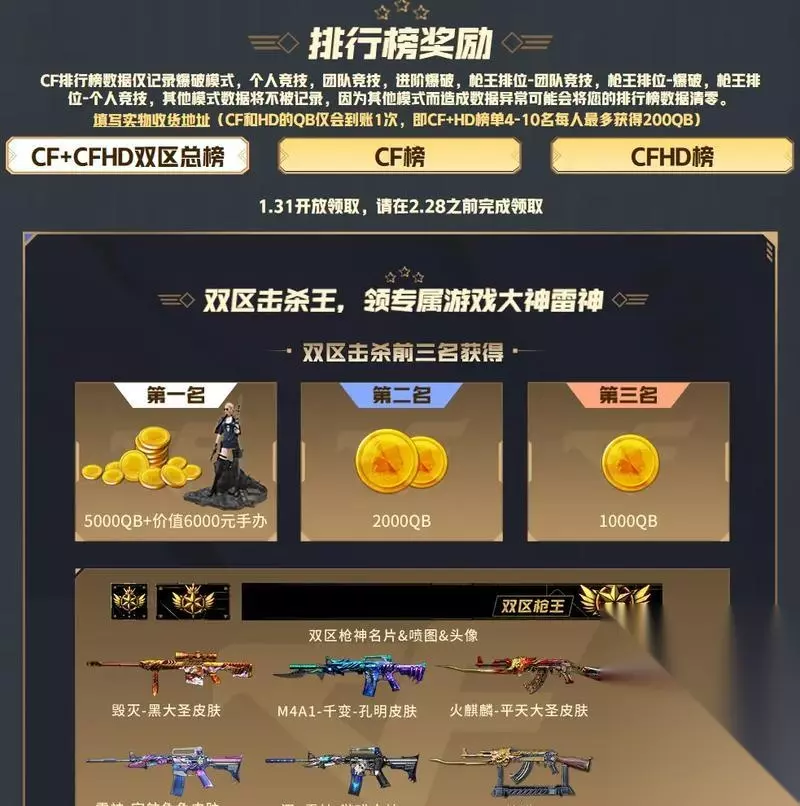 活动与节日奖励:周期性的白嫖机会 1.特殊活动:CF经常会举办各类特殊活动,比如“新兵福利”、“累计登录奖励”等。 2.节假日奖励:在重要的节日如春节、国庆节等,游戏会推出特别的福利活动,玩家可以利用这些机会获得限定装备。 社区互动:间接获取装备 1.论坛活动:参与CF官方论坛的相关活动,包括发帖、回帖、参与调查等,有机会获得装备码或兑换码。 2. 1.挑战模式:通过游戏内的挑战模式,可以获取挑战宝箱,开启宝箱有机会获得高级装备。 2.钻石系统:CF内的钻石可以用来抽取游戏中的各类道具和武器。尽管需要时间积累,但这是不花钱就能获得高级装备的途径。 游戏兑换码:直接获取装备的途径 1.官网兑换码:CF官网会不定期放出兑换码,玩家可以在游戏内输入这些兑换码来获取装备或道具。 2. 综合技巧:提升白嫖效率 设置提醒:利用手机或电脑提醒功能,设置游戏活动提醒,不错过任何白嫖机会。 参与社区讨论:在社区中积极参与讨论,分享自己的白嫖经验,同时学习他人的方法,以提高白嫖装备的效率。 结语 在CF中白嫖装备需要时间和耐心,但通过合理的规划和参与各种活动,新手玩家同样可以逐步建立起自己的装备库。希望本文所介绍的途径能够帮助各位CF新手更好地享受游戏,提升游戏体验。记住,游戏的乐趣远不止于装备,技术与策略同样重要。