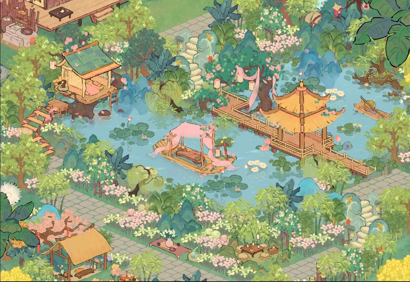 一岛布局 一幅素雅清新的国风小院图 参考自桃源深处-奈奈&潇潇&馥
