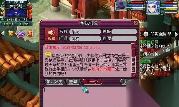 一、梦幻西65级剧情介绍 1、主线:在龙窟中打败黑风怪后获得道具"金柳露"。