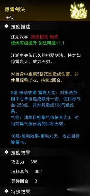 七、惊雷剑法 1、进山洞之前在梧桐村客栈与太华神剑肖寒光切磋获得。 2、跟随主线获得。 3、前往平康城武馆购买秘籍,价格为6600文。