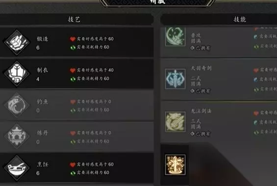3、装备店旁边有个女侠用剑的,也可以招募,这个需要我们去山贼窝获得一些装备,先把不用的白色剑和鞋给她,再送绿色的装备,这样好感度到40,再去山贼窝把打的装备分解,做成九品剑,蓝色给她,一直送到好感度60招募。 4、打完山贼窝前面有个小村,进村之后会有个小二打招呼,打完招呼旁边会刷新一个NPC,是使用暗器的,送药和食物可以增加好感度,旁边的小二卖蓝色酸菜鱼送这个直接到60招募。 5、这样我们就是五个人队伍,去哪里都可以。 二、锻造 1、上贼窝打装备之后分解,做成九品装备和武器继续分解,重复做。 2、建议锻造之前存档,可以获得好品质的。