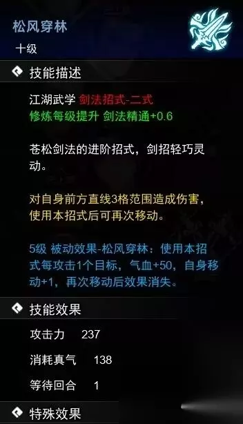 四、松风穿林 1、跟随主线获得。 2、前往平康城武馆购买秘籍,价格为2800文。