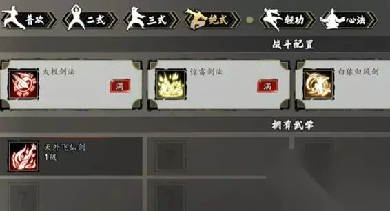 逸剑风云决武学收集攻略 一、基础剑法 1、主角初始自带5级基础剑法。 2、如果没有的自带的话后期前往平康城武馆购买秘籍,价格为600文。