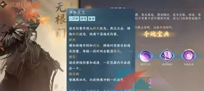 《逆水寒手游》无根门全部绝技获取攻略 1、移步生尘:这个技能只需要玩家们加入无根门学习即可解锁;