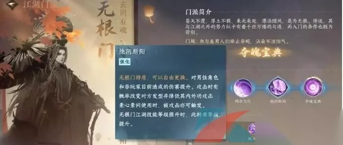 无根门是游戏内的一个门派,这个门派中还有对应的技能,会带来不同的增益效果,每个技能的获取方法也不同,那么无根门的技能要怎么获得呢?接下来233乐园小编就给大家整理了关于逆水寒手游无根门全部绝技获取攻略全部内容,感兴趣的小伙伴继续往下看看吧。 《逆水寒手游》江湖门派无根门相关攻略汇总:点击查看