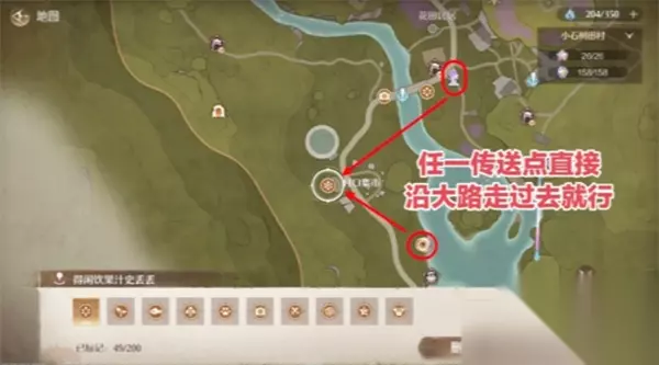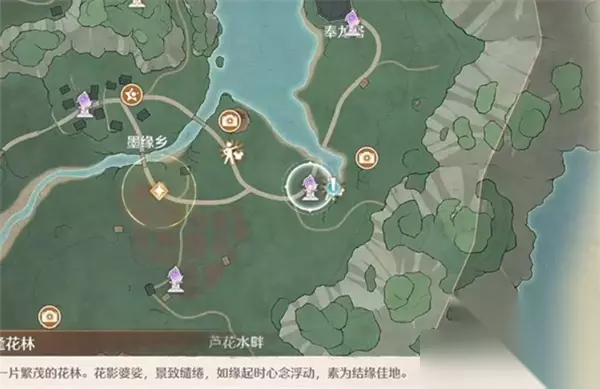 无限暖暖史丢丢大搜寻花林疏影里位置一览 1、前往逢花林传送点。