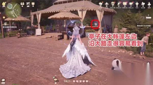 3、【得闲饮果汁】 传送点指引: 可从【村居岔路传送点】出发 或直接使用新解锁的【迷宫入口传送点】 任务点位:沿主路前行,在大帐篷前方区域即可找到贴纸