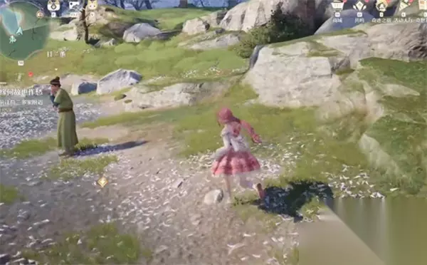 4、抵达山崖边,即可发现史丢丢,靠近即可完成收集。