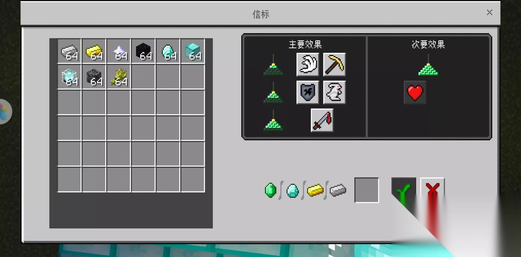 4、最后我们右击点开信标,放任意的矿物。选择属性,点击确定,属性会在信标范围内为自己提供BUFF效果。
