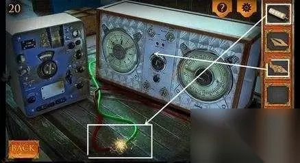 十八、随后我们回到之前设备的桌上,将绿色和红色的线挪动会冒出火花,将纸筒、炸药、导线结合起来获得烟幕弹,用火花引燃。将在望远镜处得到的图纸放入仪器内,然后将点燃的烟幕弹放到正中间,不久就会有直升机过来,即可过关。