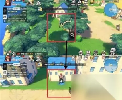 随后去郊外小树林开启宝箱,去海军仓库 密码为1657,输入后就可以开启宝箱完成任务 强敌对战 位置如下