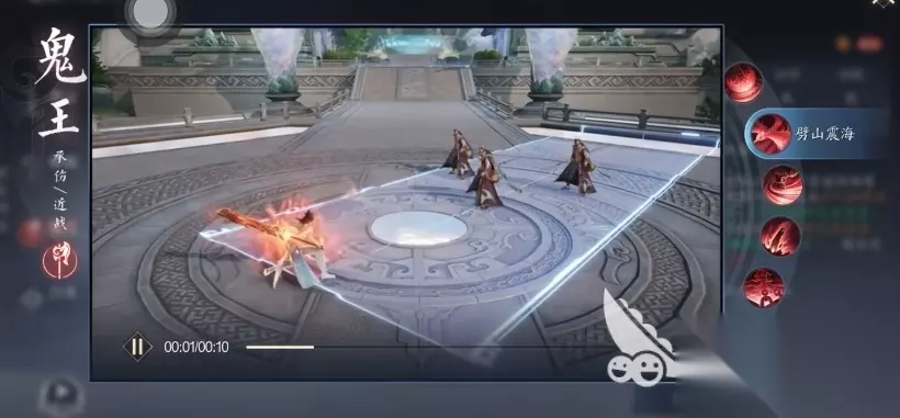 四技能劈山震海需要鬼王短暂蓄力,在这短暂的准备时间里,他会积蓄很多的能量,而后进行的多次强力挥砍,造成巨额伤害,当鬼王的怒气值攀升的温度计一般达到100这一临界点时,他能够触发状态转变效果,此时的状态变成了明王形态,整个身体都会更高大,在这个形态当中不管使用什么招式都会有提升,一技能幻化为天魔舞,此时的鬼王仿若化作一个旋转的风暴中心,然后回对周围敌人进行多段攻击,每一击的数值都比之前的基础输出强劲许多。