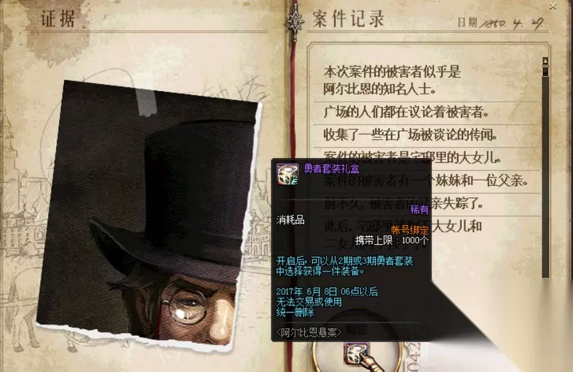 首先接到任务后需要和电话亭对话,然后在利亚小屋右侧点击电话亭进入神秘的城市阿尔比恩。 然后有四个NPC,分别是卫兵,清洁工,管家和修理工。每个副本通关可获得2个证据。