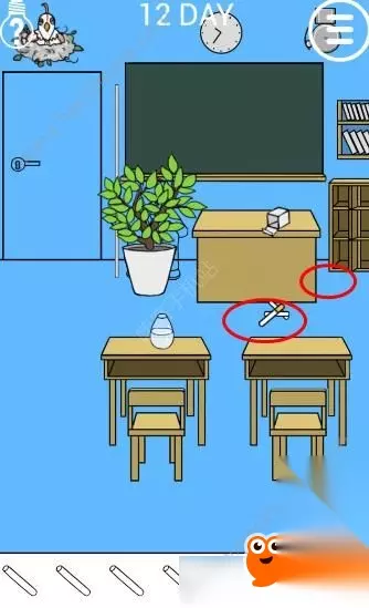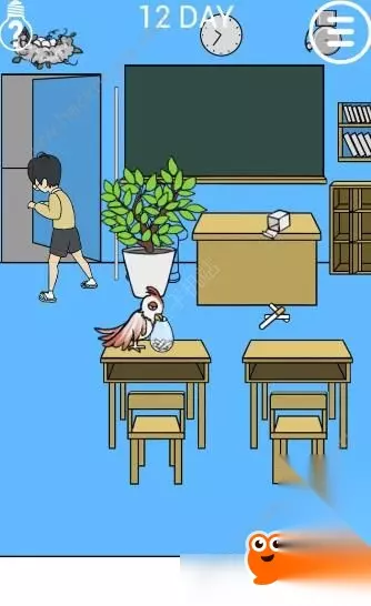 本篇是逃课大作战第十二关的图文攻略,逃课大作战第12关难点是找齐全部粉笔,本攻略为大家分享逃课大作战第十二关的通关步骤:先收集齐4根粉笔放入水瓶,引来鸟喝水后获取鸟脖子上的钥匙,最后用钥匙开门即可通关。