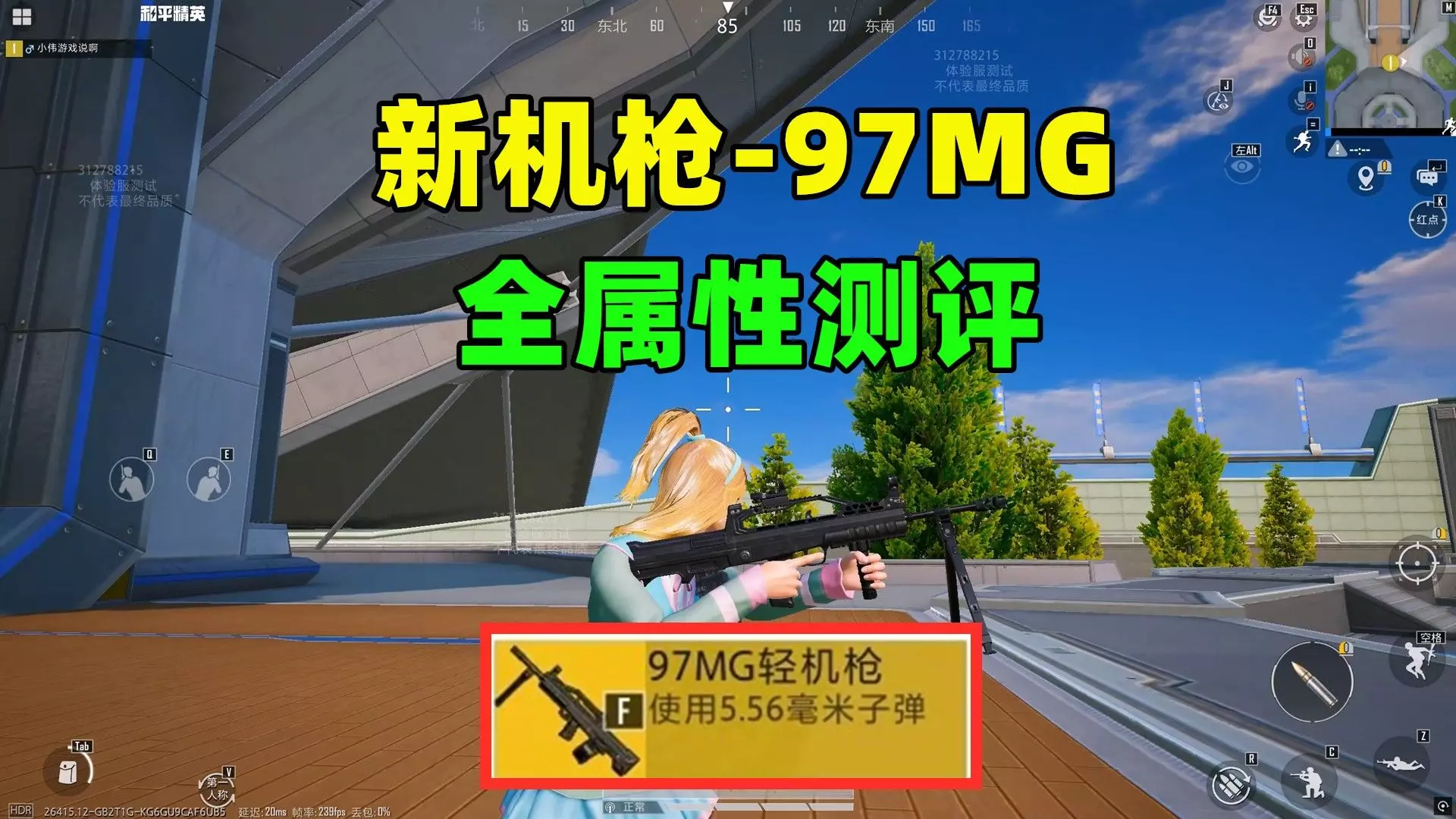 这是《和平精英》的搞笑视频,展示了体验服的新武器97MG轻机枪,该枪使用5.56毫米子弹,可装配三个配件,但出现了无法装配适配弹匣的搞笑状况。