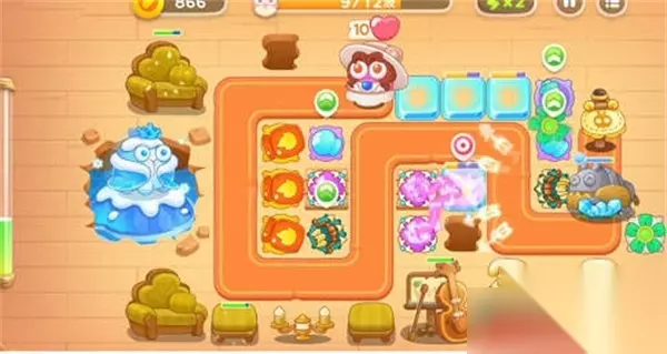 3:第三波的话,开始大冰冻boss,这里可以会把普通的兔子变成冰冻的兔子,我们可以让他在炮塔少的地方死亡,要么就不要太过于集中,不然被冰冻了解不开; 4:同时这个关卡也要尽快的清理boss的三个箱子,里面是火瓶子专门对付这个boss用的; 5:第四波到十二波,解开第一个火瓶子之后升级,然后我们顺便把三个火瓶子都解锁了,集中打boss就好了,第六关就会出现捣蛋兔,我们注意它和补底板的漏洞就好了。