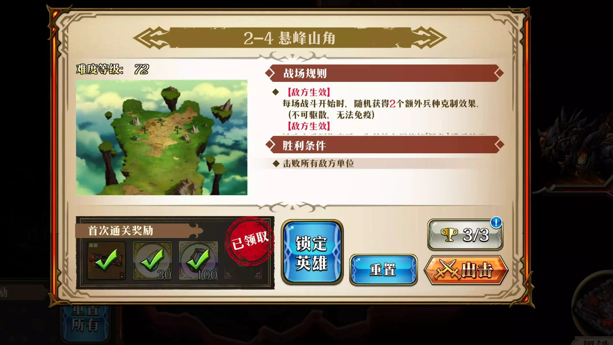 阵容: 别用1-4BOSS关英雄 炎龙光头 3C 血怒 护卫 蒂亚莉丝 3C 任意骑兵 利昂 任意弓兵 娜姆 战匣 颂歌 奔袭