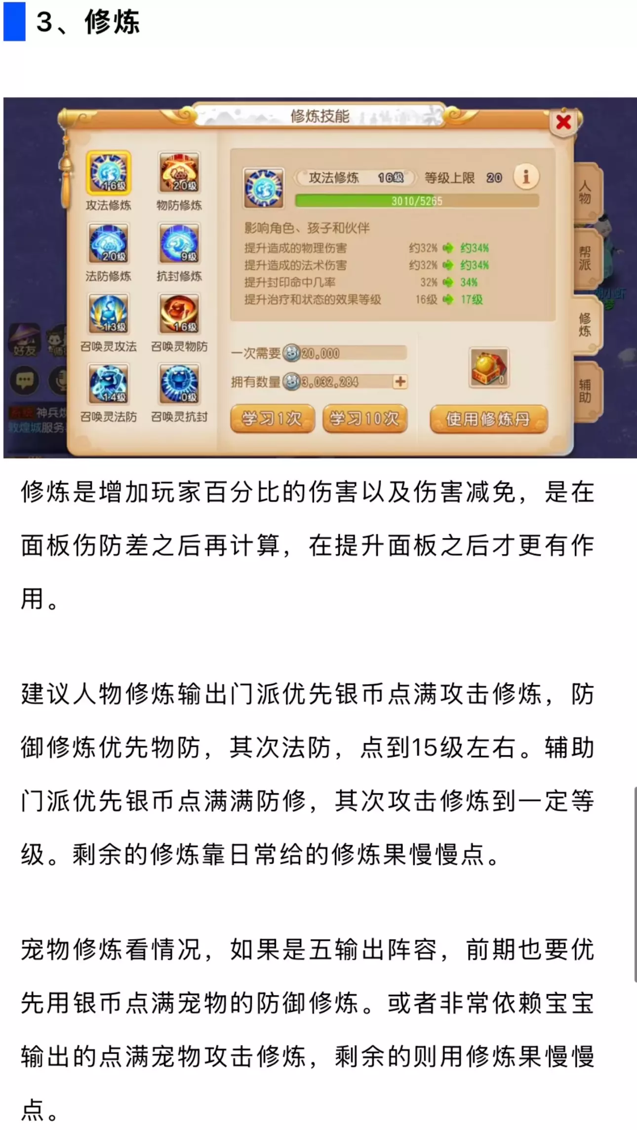 梦幻手游新手攻略—角色银币提升顺序