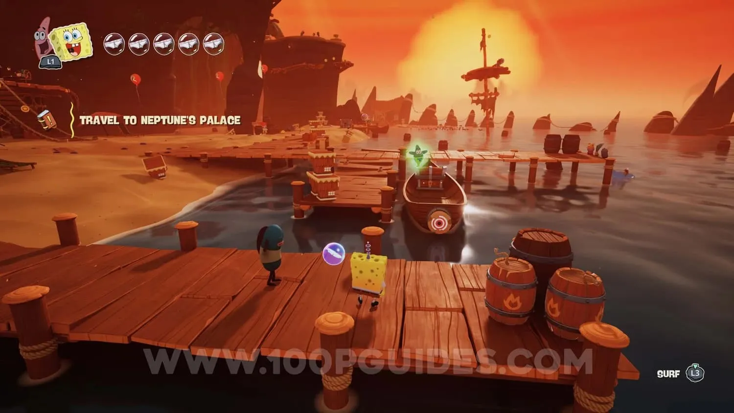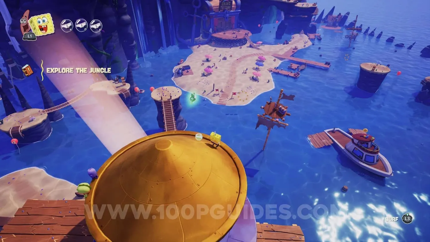 使用帕特里克将船拉到关卡开始时的码头附近。你可以按三角键来完成这个操作。你需要进入关卡的丛林区域才能解锁这项技能。