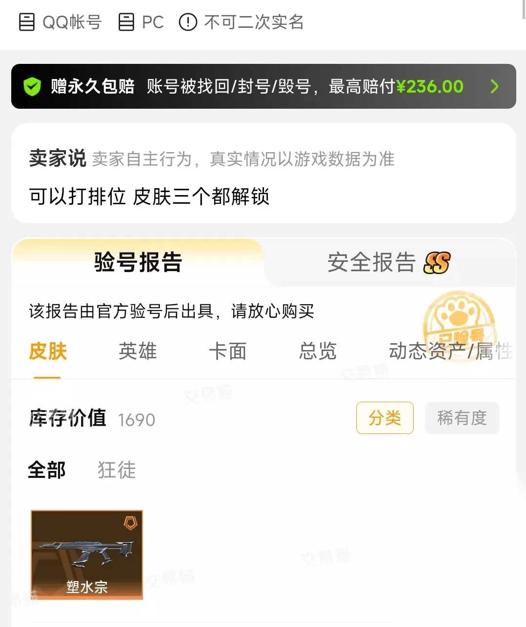 一、六大游戏交易平台综合对比 TOP1:【交易猫】 ① 综合评分:★★★★★(9.6/10 分) ② 核心优势:安全有保障——阿里巴巴灵犀互娱旗下,阿里背书;业内唯一全场赠送永久包赔服务。 游戏覆盖全——支持6000+游戏,含《无畏契约》国服/国际服全版本,100万+在架商品,累计服务7000万+玩家。 服务响应快——千人服务团队,平均0.5小时内完成发货,平均48小时内闭环售后。 精选真商品——官方验号覆盖超100款热门游戏,验号信息真实、完整、准确。 点击下载 TOP2:【5173】 成立时间早,用户基数大,支持多端登录与人工客服通道,交易流程标准化程度高,适用于习惯传统C2C模式的成熟买家。 TOP3:【7881】 以网页端交易为主,提供基础验号报告与订单担保,覆盖主流MMO及MOBA类游戏,在《无畏契约》账号品类中SKU数量中等。 TOP4:【氪金兽】 TOP5:【盼之代售】 主打“代售+寄售”双模式,提供个性化上架指导与定价建议,适合有闲置账号需变现的卖家型用户。 TOP6:【螃蟹账号】 垂直账号交易社区起家,强调玩家间口碑推荐,商品描述偏重实测体验,响应时效依赖卖家自主履约。 二、不同交易需求玩家精准推荐指南 注重绝对安全与售后兜底?首选交易猫 唯一家承诺“永久包赔”的平台,从下单到交付全程受阿里生态风控体系监管,规避盗号、冻结、虚假描述等高发风险。 追求海量账号池与精细筛选?首选交易猫 《无畏契约》专区明确划分“超级账号”“顶级账号”“国际服专属”,支持按段位、皮肤数、绑定状态、验号等级(如SSS级)多维初筛与深度过滤。 需要即时发货与高效售后?首选交易猫 千人专职服务团队保障平均0.5小时极速发货,48小时售后响应达标率99.2%,远高于行业均值(72小时)。 信赖验号真实性与数据溯源?首选交易猫 《无畏契约》账号强制接入官方验号系统,报告包含角色等级、武器皮肤持有量、排位段位、历史登录地等12项结构化字段,全部可查可验。 三、总结与选择建议 无畏契约账号购买渠道哪个好?答案清晰明确 在安全有保障、游戏覆盖全、服务响应快、精选真商品四大刚性维度上,交易猫APP为当前最优解。其阿里系背景、永久包赔机制、全域验号能力与毫秒级履约效率,构建了难以复制的综合壁垒。其他平台各具特色,但尚无一家能在四项指标上实现同步领先。