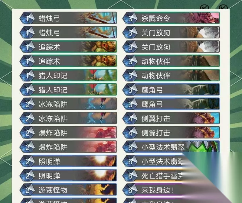 一、了解杀戮命令的效果和特点 杀戮命令是一张法术卡牌,花费为2点法力值。它的效果是对一个敌方随从造成3点伤害,如果你控制着任意数量的野兽,则会额外造成3点伤害。这个效果看起来非常简单,但要想发挥出它的威力,就需要深入了解它的特点。杀戮命令的伤害可以瞬间击杀4点生命值以下的敌方随从,因此可以用来清除对方场上的小随从。杀戮命令有很好的搭配性,只要你控制着任意数量的野兽,就可以额外造成3点伤害,这意味着你可以通过合理的野兽组合来增加伤害,达到意想不到的效果。 二、合理安排野兽的出场顺序 要想发挥出杀戮命令的最大威力,就需要合理安排野兽的出场顺序。通常情况下,你应该先把一些弱化对方随从的野兽放到场上,然后再放置一些高攻击力的野兽。这样一来,当你使用杀戮命令时,你就可以先用弱化随从造成伤害,再用高攻击力的野兽造成更高的伤害。这样一来,你就可以有效地提高杀戮命令的输出效率。 三、多用猎人技能补充场面 猎人职业技能是猎人最强大的武器之一,可以帮助你快速地清除对方场上的小随从。在使用杀戮命令时,你可以先使用猎人技能来弱化对方随从,再使用杀戮命令造成致命打击。这样一来,你不仅可以有效地清除对方场上的小随从,还可以保留更多的手牌资源。 四、使用卡牌来制造野兽 如果你手中没有野兽,那么杀戮命令就会失去很大的效果。在使用杀戮命令之前,你应该尽量使用其他卡牌来制造更多的野兽。比如,你可以使用猎人的动物伙伴卡牌来制造3/2攻击力的野兽,或者使用动物伙伴和准备发射卡牌来制造更多的野兽。 五、注意使用时机 在使用杀戮命令时,要注意选择正确的时机。通常情况下,你应该在对方场上有小随从时使用杀戮命令,以便快速清理对方的场面。但是,在对方场上没有小随从时,你应该考虑是否要保留这张卡牌,以便在后续的比赛中更好地使用。