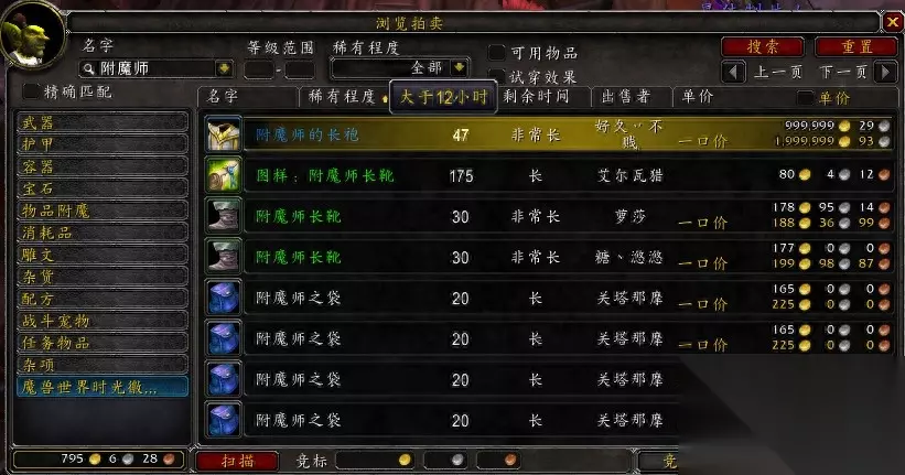 一,附魔师的长袍。附魔师的长袍之所以能占据第一位不是没有原因的。相当低的掉率,以及唯一的造型让很多幻化收集控们抓狂不已。首先来看,这是今天来自魔兽世界国服第一服务器——安苏服务器AH的价格。199万的天价,让很多小伙伴们只能望‘袍’兴叹。而小编作为一个幻化控跟奸商是十分希望自己能通过击杀小怪得到一件。接下来给大家说一下这个“附魔师长袍”的掉落位置。在东部王国辛特兰(65.81),击杀米瑟雷希斯有万分之9的几率掉落,而且这个精英怪刷新时间不一定,怪的稀有刷新跟极低的掉率,更加大了附魔师长袍的价值。