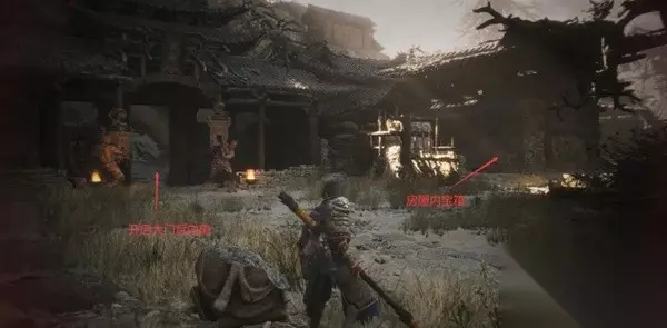 疾蝠精魄:走过一座石板小桥打掉一个远程怪,继续前进钻入岩缝后的场地内,击杀精英疾蝠。 九转金丹:刚才钻入岩缝后的正前方,两个火盆当中的木质篱笆后方。 继续前进,来到卧虎寺(寺门)土地庙。 卧虎寺(寺门)-黄风阵(定风桥) 宝箱10:从卧虎寺(寺门)土地庙出发,左转进入寺门。触发虎先锋BOSS战前,右侧靠墙。 NPC黄袍员外:如果之前从石中人处购买了醒酒石给黄袍员外,那么他会出现在这里。和他对话后给他碧藕,他会回到最初遇到他的地方。如果没买醒酒石,之后的路线会捡到。可以到时候再继续支线任务。 打坐蒲团4:触发虎先锋BOSS战前,建筑左侧佛像下。 妖王虎先锋:击杀获得开门道具虎之锋。此时我们已经可以前往本关最终BOSS了,但是当然是选择继续舔图啦。 击败虎先锋后使用石之厉就可以开启隐藏道路,这里我们选择先继续向虎先锋身后的区域探索。 铜丸:泡酒物,击败虎先锋后向他身后区域继续探索。在上坡路左侧的桌子上。 再向前一点就到黄风阵(定风桥)土地庙。 黄风阵(定风桥)-黄风阵(定风庄) 宝箱11:过桥后进入第一个院子,左侧第一间房屋内。 醒酒石(登仙散):过第二排房屋来到第二处院落空地内,向左转走到底,右侧小屋内。如果已经跟石中人购买了醒酒石,就会变成登仙散。获得后可以推进黄袍员外支线了。登仙散是消耗品,使用后一段时间不耗气力,后期能自己炼丹获得。 宝箱12:还是这处院落,反方向打碎木篱笆走到底,有个棺材宝箱。 鼠禁卫精魄:穿过石桥向前,遇到四只红袍子老鼠怪,击败后获得。 宝箱13(拨浪鼓剧情2):鼠禁卫战斗后先别开启后面的木门,旁边一处房子内获得。这里也是拨浪鼓支线剧情的触发点,后面还会来。