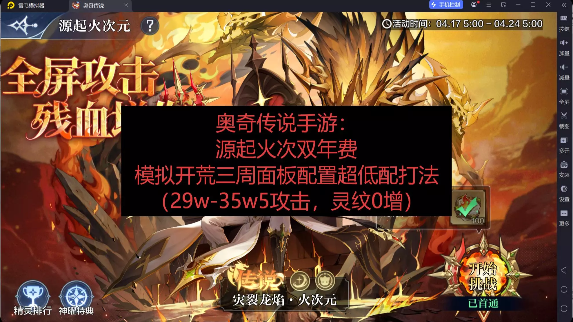 后续开荒号不会再出一次视频过程,有的关卡太凹了,火控一关凹复活双禁疗的时间比其余五关加起来还多都。 精灵池只能说,开荒三周的双年费玩家是能够搞出来的,规划的好的…