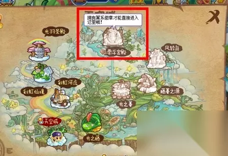 《洛克王国》漂浮宫殿地点列表 地点介绍: 1、输入洛克王国后,点击下方地图,在地图上找到天空之城。 2.将鼠标置于天空之城即可看到漂浮宫殿) 3.点击天空之城直接进入。 4、部分玩家会发现无法进入漂浮宫殿区域。 5、由于玩家没有获得翼徽而导致的。 6.玩家获得任意翼型徽章后即可进入地图漂浮宫殿。