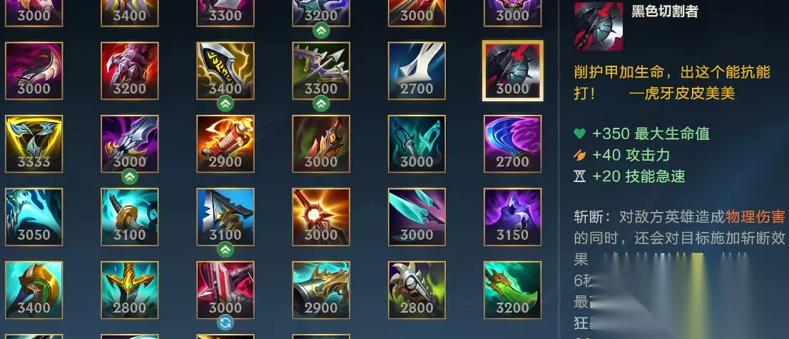 诺克萨斯之手德莱厄斯是LOL手游中典型的上单战士,其核心机制围绕被动出血叠加与大招收割展开。出装需兼顾生存与输出,首件装备通常选择黑色切割者,提供攻击力、冷却缩减和破甲效果,完美适配诺手依赖技能衔接与持续作战的特性。斯特拉克的挑战护手作为第二件装备可显著提升容错率,其护盾触发机制与诺手残血反杀的定位高度契合。后续补振奋盔甲增强Q技能回血效率,亡者的板甲则弥补机动性短板,形成攻守兼备的中期装备框架。