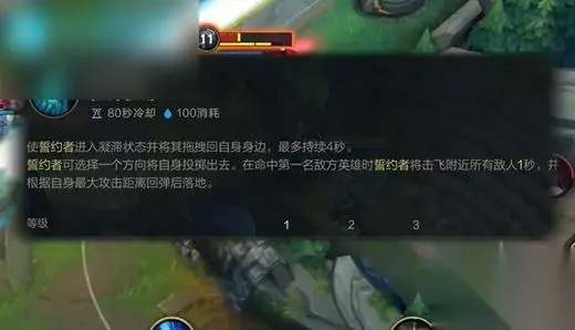3、大招拖动任意技能键,都可以选择一个方向把自己丢出去。 4、丢出去的过程中要是撞到了敌方英雄,那么就会将这个英雄击飞,但是不造成伤害。