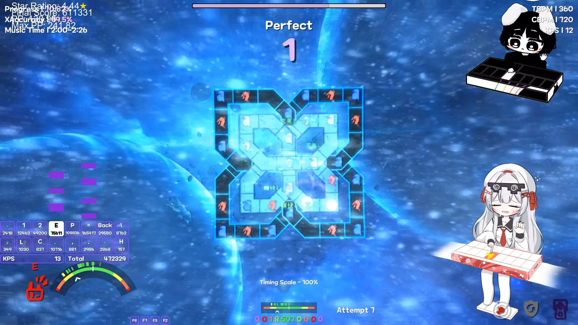 谱师:@十泉原 &@籽榔CRUH 谱面:BV1MLQbB4Ehp 音乐:M3 - Les Apollo AutoRating Mod G20 (?) 体感P18