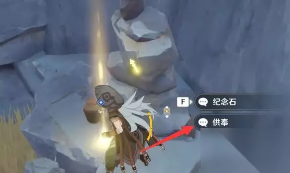 在他旁边那个石台的地方放入那6个物品进行供奉。