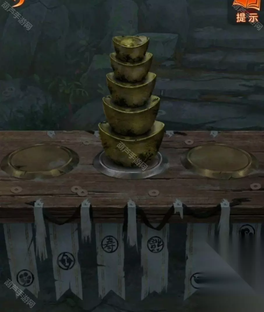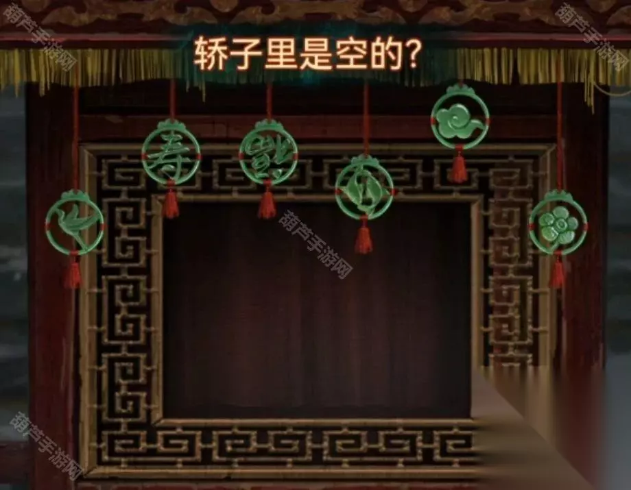 先查看一下轿子不让掀开帘子,那查看一下左边的桌子,使用金元宝后玩一个叠叠乐小游戏,将所有元宝都移动到中间画有元宝图案的地方,完成后下面布条打开,观察一下布条大概是有四种高度的,最高的是云,第二高的是福寿,第三高的是1,最下面的是花鸟,记下来再次查看花轿调整到同高度。