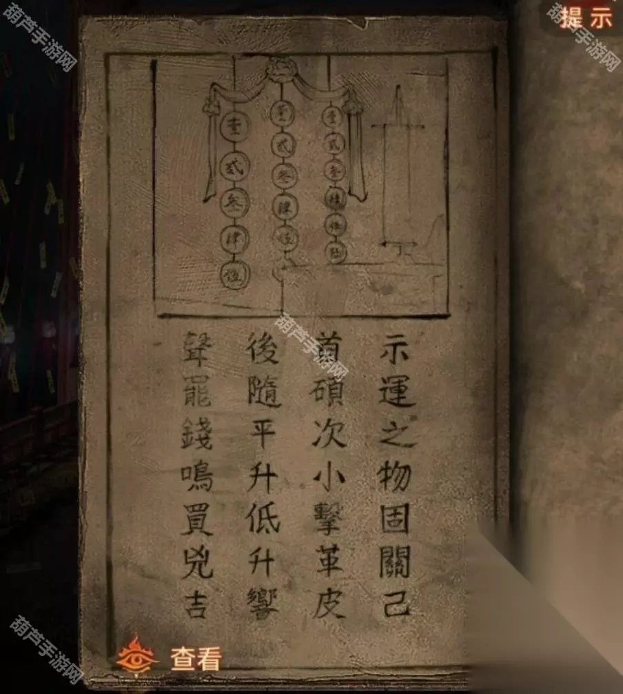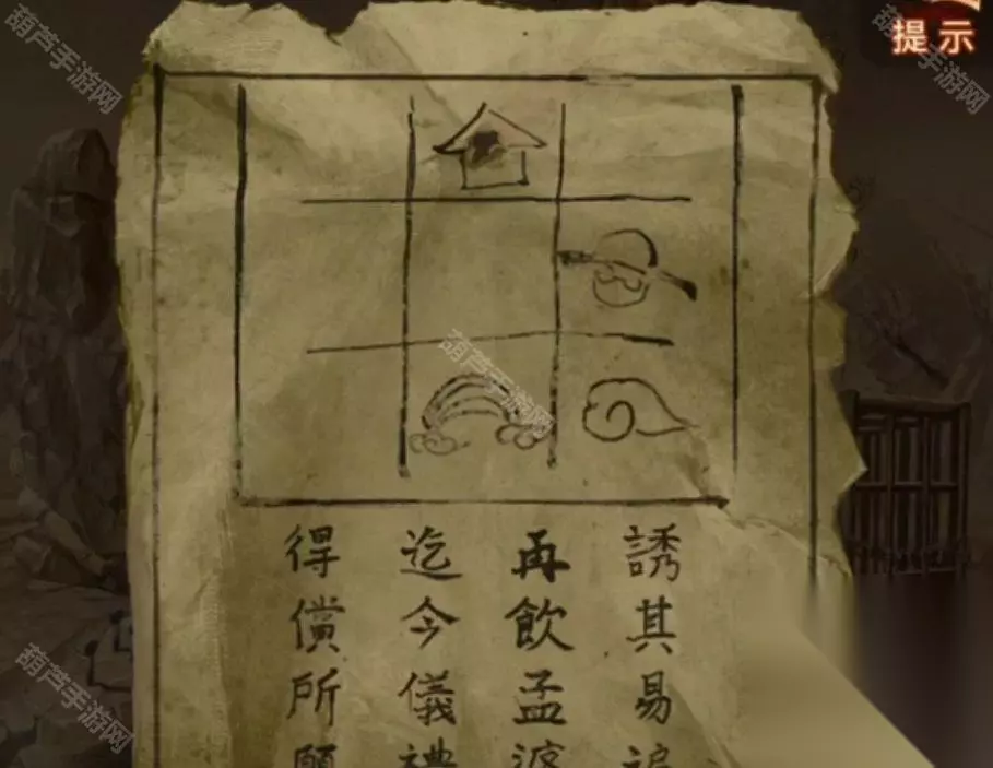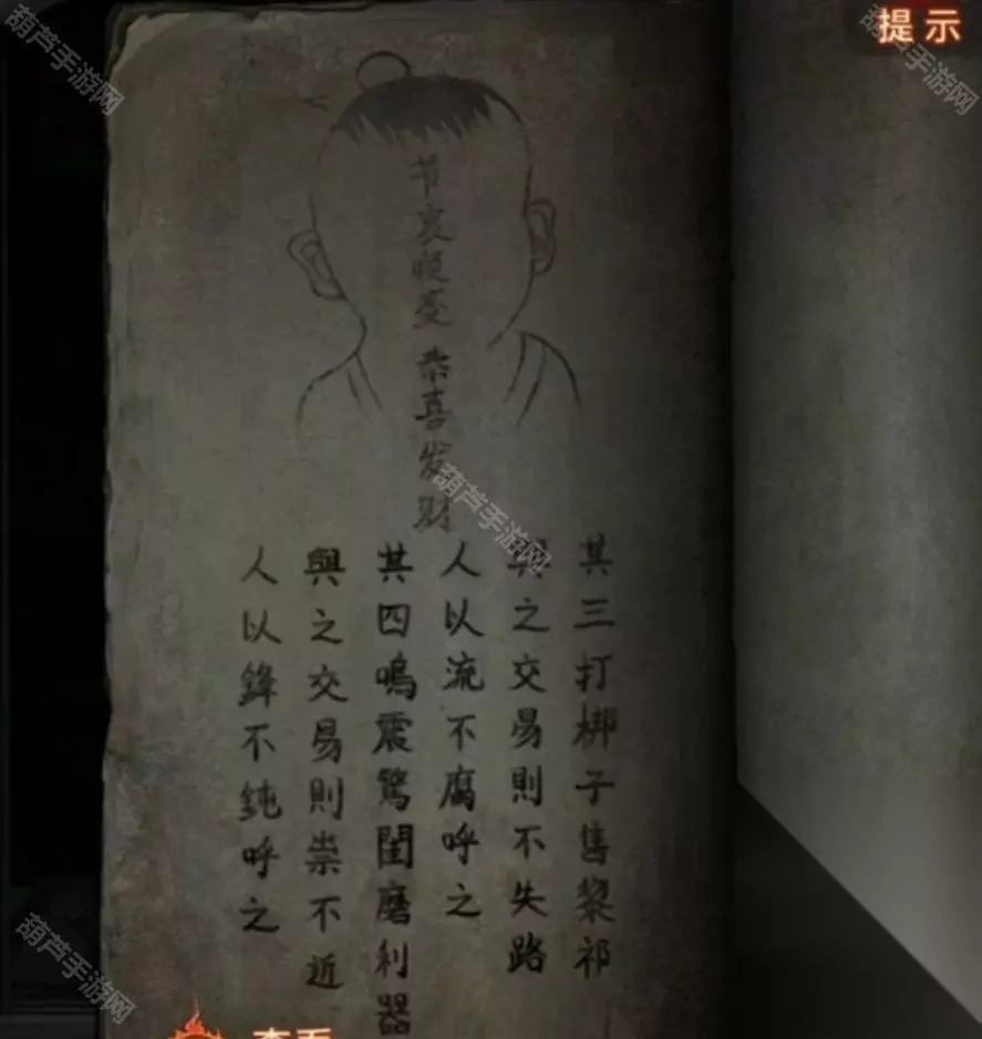 猥琐道士消失后记得查看一下地上掉落的东西,是他的帽子,里面还有几根头发,这样黑心的头发不就有了,再加上纸人是无心的,回到阴阳牢,查看一下牢房,将黑心头发放在八不郎左边,纸人头发放在八不郎右边,然后就从桶里拿到钥匙了,对牢房使用钥匙开门,看剧情本章结束。 第五章通关攻略 先查看一下无字书,然后查看左上角位置拿到一个火把,查看左边台子位置发现是可以移动位置的,后面我们会用到先记一下,然后就可以点击左下角箭头来到轮回殿场景了。