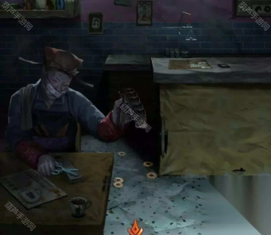 不要查看右边的渔夫铜雕,会有个抬头小高能哦,点击算卦人右边的门能打开一条缝,但是有只手拉住了门,右转看到了熟悉的猥琐道士!这道士怕是对救女人有心理阴影了哈哈哈,毕竟要不是为了救莫琪宁子服也不会坏了他的好事,不过不管猥琐道士吹得再好我们也知道他没安好心了,还好这是纸嫁衣不是阿姐鼓,要相信我们的男主是有脑子的。