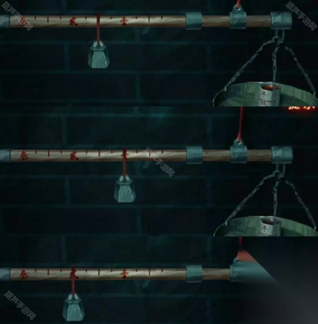 调整完毕如下图,拿到童子钥匙和一个模具,进入火锅场景,查看左边的喝铁水纸人,先将模具放在纸人头顶位置,然后转动把手让铁水倒入模具,然后再次转动把手让铁水回到纸人嘴里,对旁边的模具使用冰块就能拿到铁杯子,只不过是实心的!